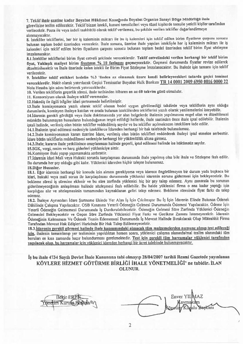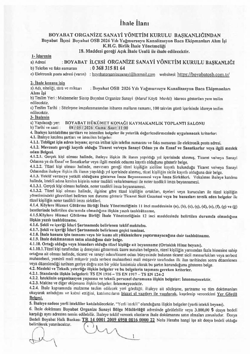 / Boyabat OSB İhale İlanı