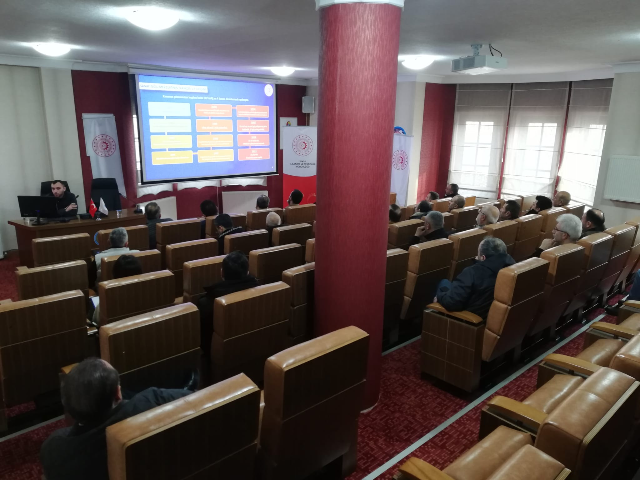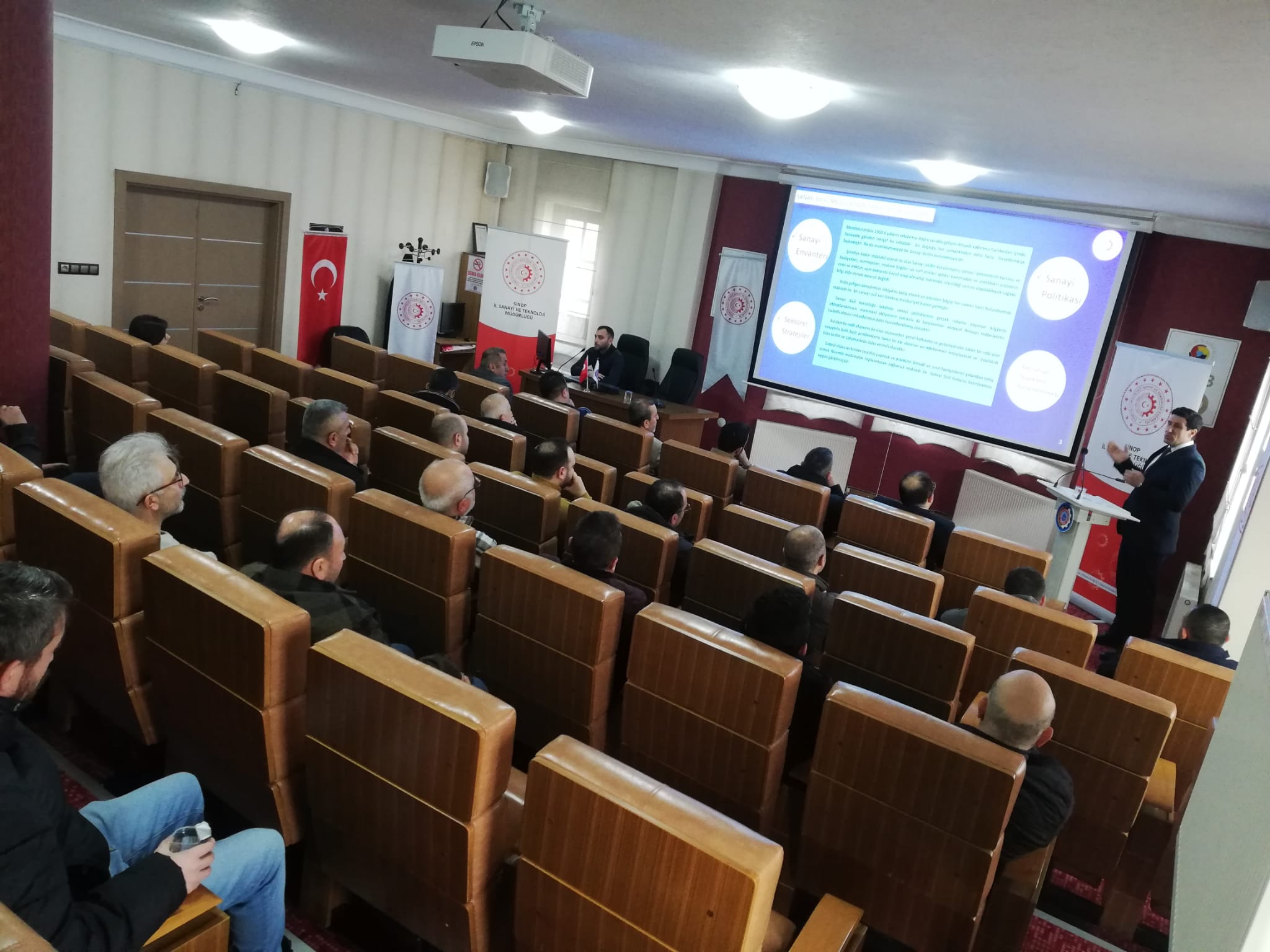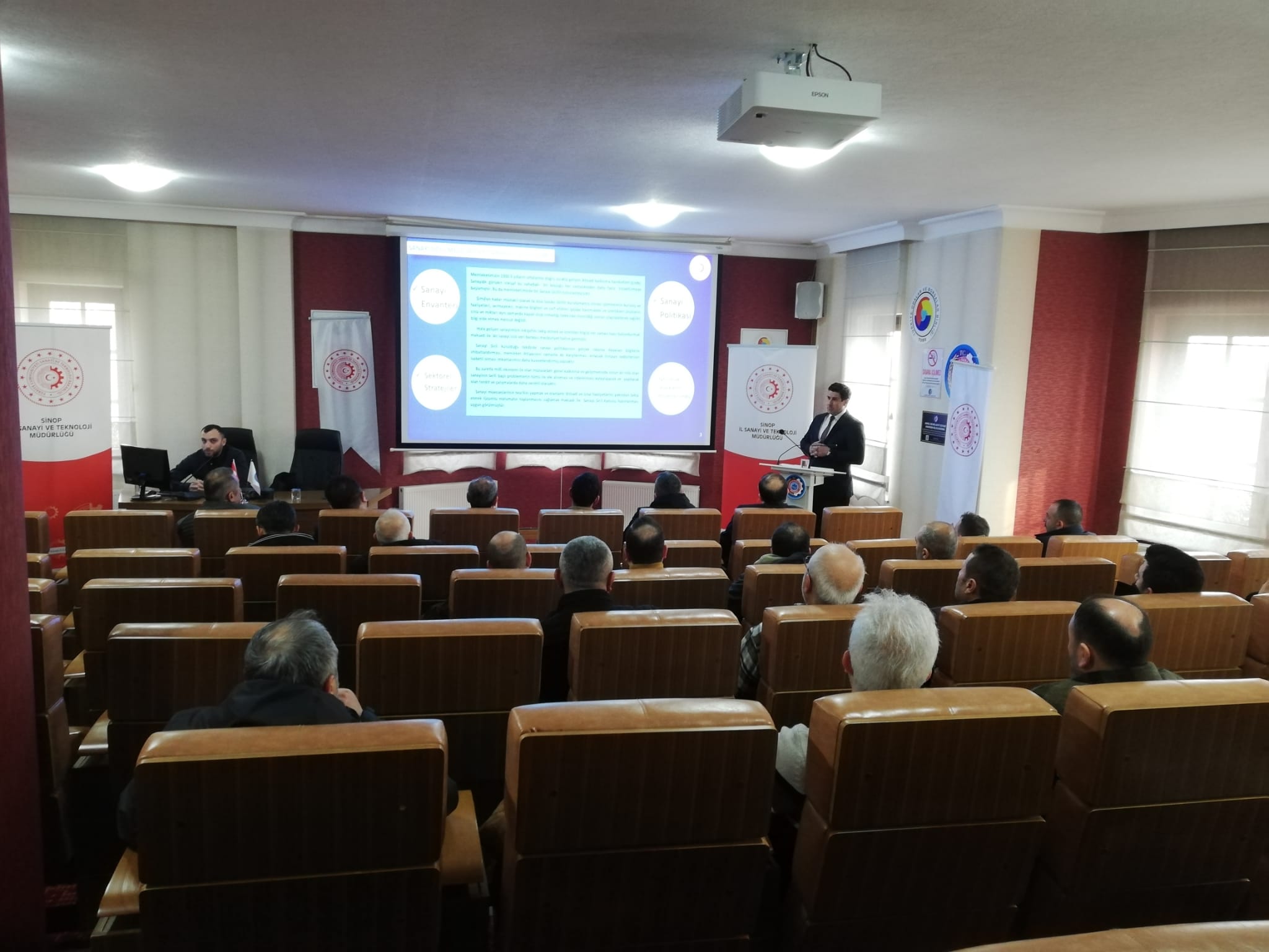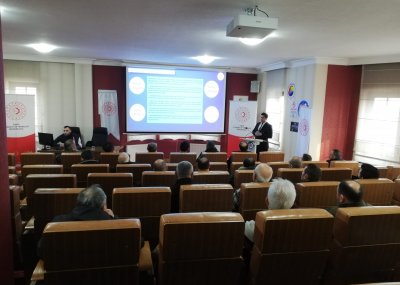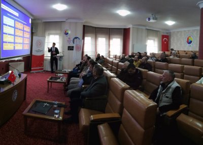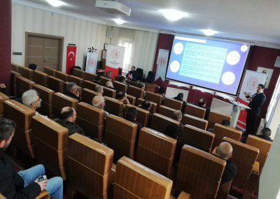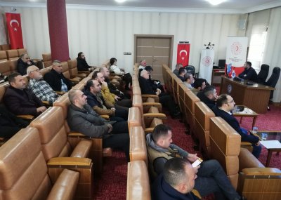 Toplnatıda Sanayi Sicil Belgesi hakkında teknik bilgiler ve avantajları ile ihlal durumlarında uygulanan cezalar hakkında Sanayi ve Teknoloji İl Müdürümüz Ömer Sarıkaya ve Tekniker Ömer Gönel tarafından sunum yapıldı.